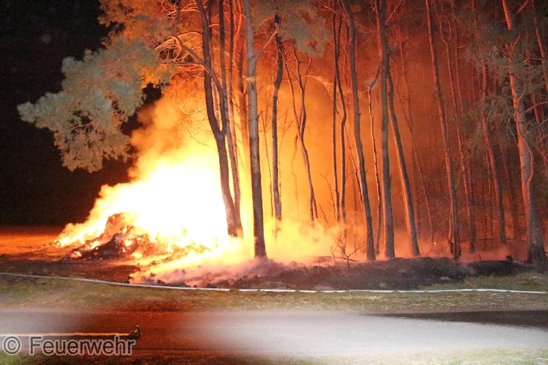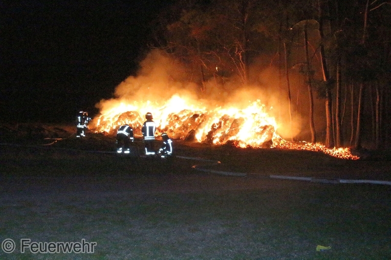 Bei Eintreffen der ersten Kräfte brannte eine Strohmiete mit ca. 150 Strohballen, welche sich direkt am Waldrand befand, in voller Ausdehnung. Das Feuer begann sich bereits im Wald auszubreiten. Eine weithin sichtbare Rauchwolke und Feuerschein standen über dem Hitzker.