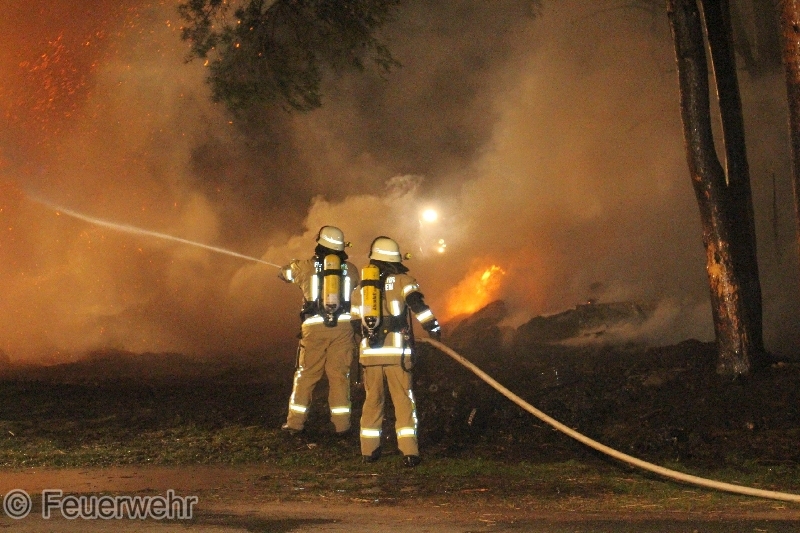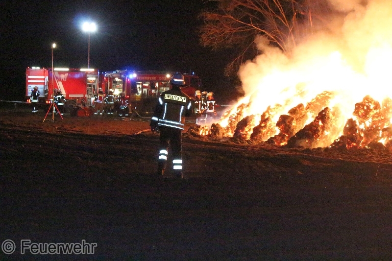 Die Strohballen wurden durch das Feuer vollständig zerstört, zur Brandursache hat die Polizei die Ermittlungen übernommen.