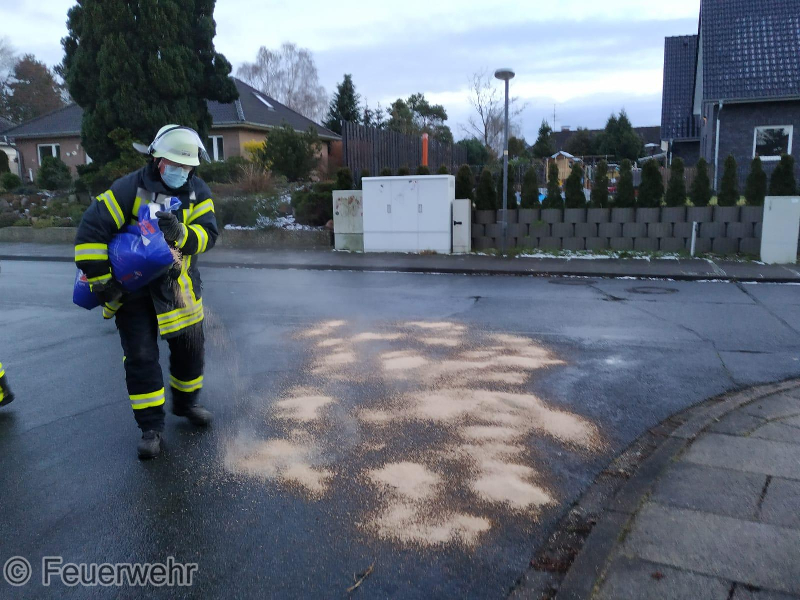 Zwischen Ortfeld und Wasserwerk wurden mehrere Ölflecken vorgefunden und wo nötig abgestreut.