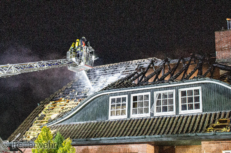 Insgesamt waren weit über 150 Einsatzkräfte vor Ort und bekämpften über zehn Stunden lang das Feuer und die letzten Glutnester. Die Nachlöscharbeiten gestalteten sich als sehr schwierig, da sich viele Glutnester in die Zwischendecke, in Teilen des Daches und in den Wänden versteckten. Um diese zu finden, wurde das Dach fast komplett abgedeckt, Wände geöffnet und stellenweise die Zwischendecke zum ersten Obergeschoss geöffnet.